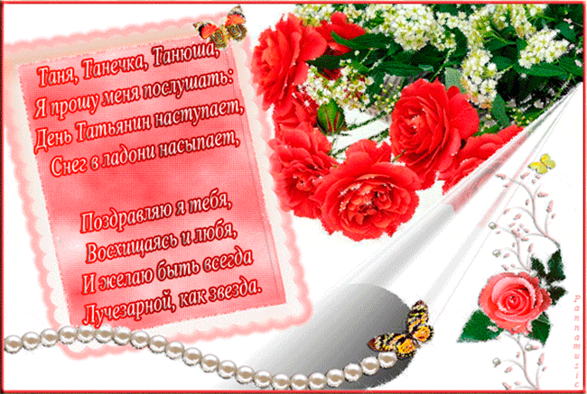 Галерея красивых, анимационных, поздравительных открыток. Татьянин День и День студента. 25 января. Блестящие, мерцающие, живые, gif картинки для Татьяны, Танечки, Танюши. Новые гиф открытки с поздравлениями на День Татьяны.